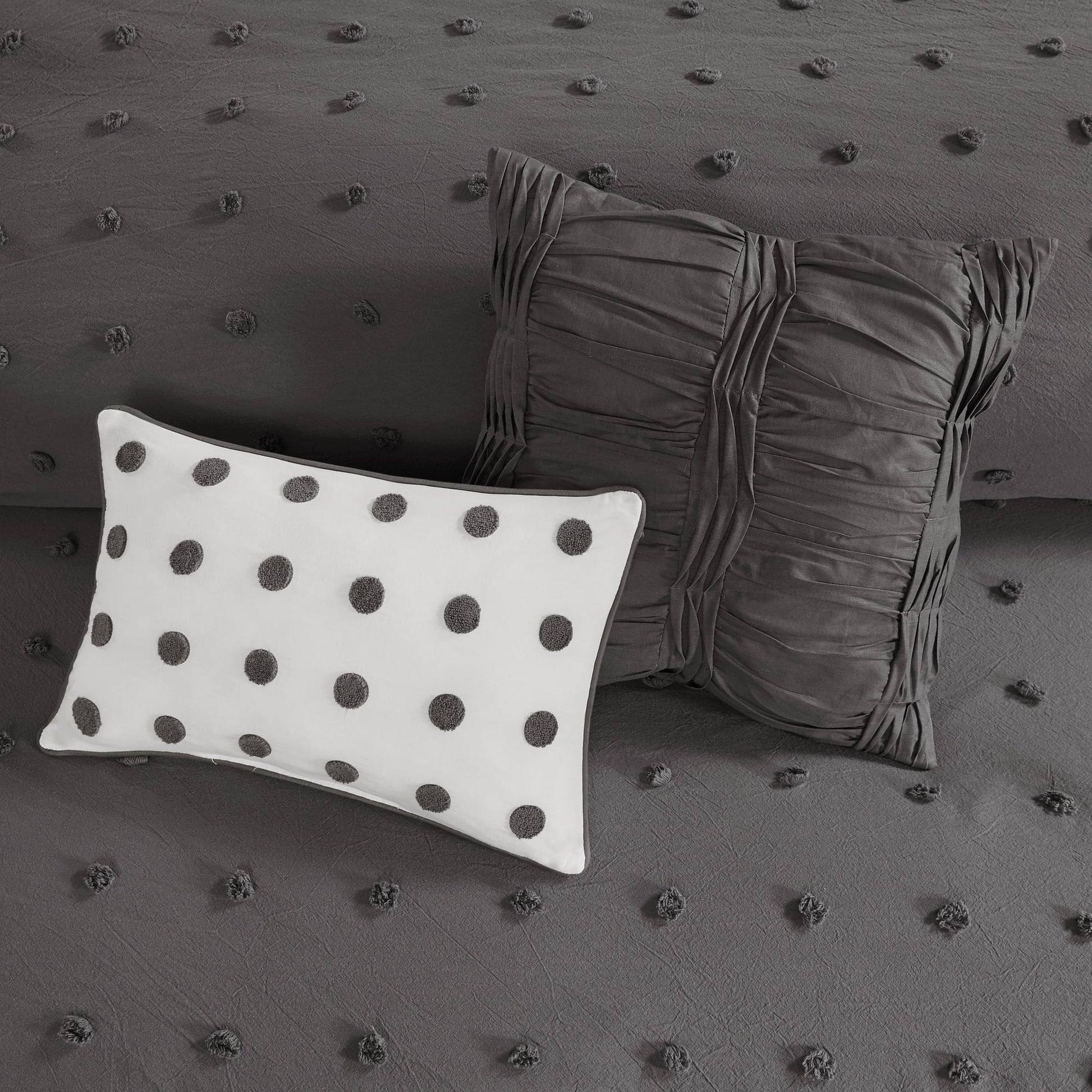 - Simple And Cottage Like All Over Woven Cotton Dots On Top Of Bed