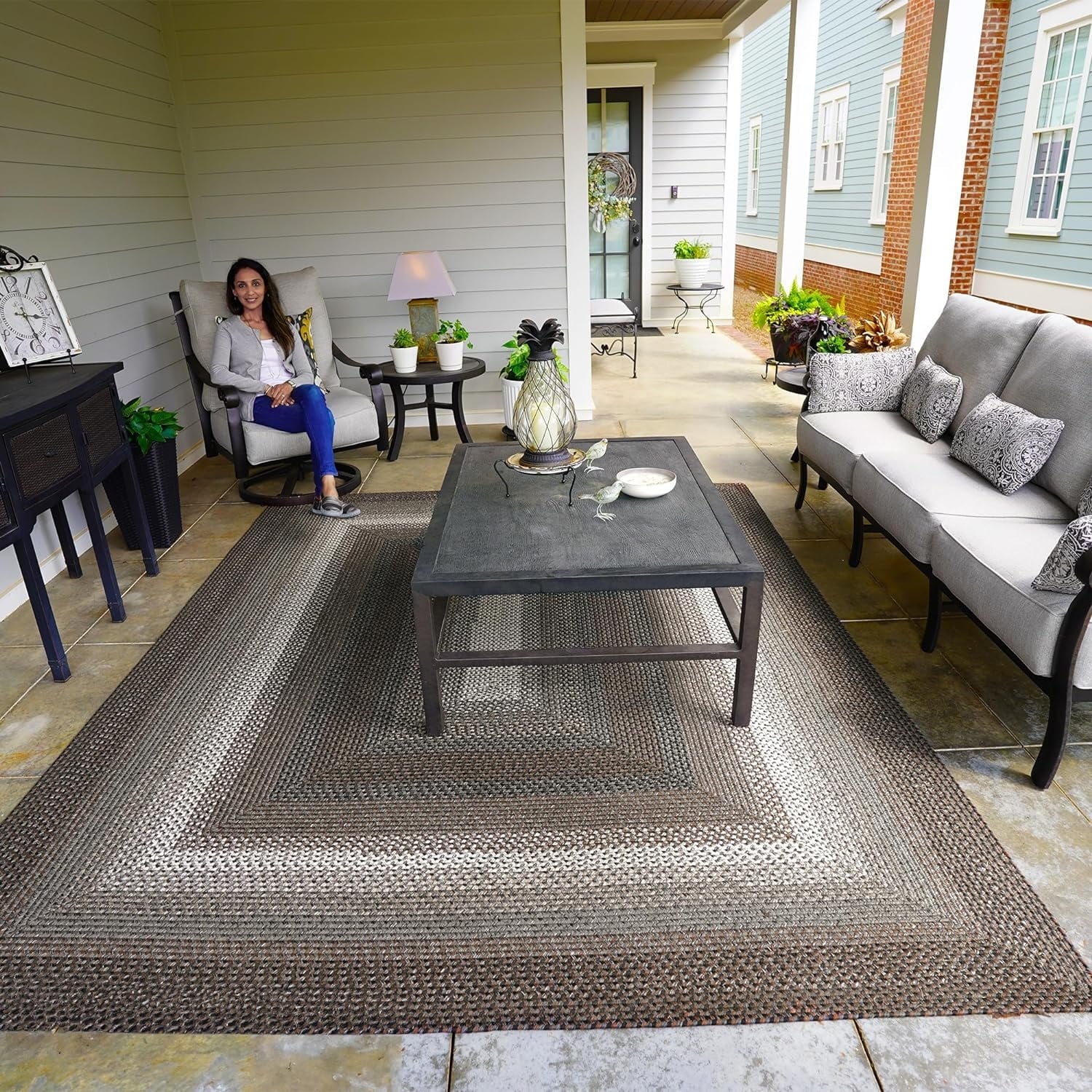 Homespice Midnight Moon Washable, Indoor-Outdoor, Pet Friendly Braided Area Rug, Reversible, Stain Resistant for Deck and Patio, Farmhouse, Rustic Modern Style, Grey - Black - Brown, 4' x 6'