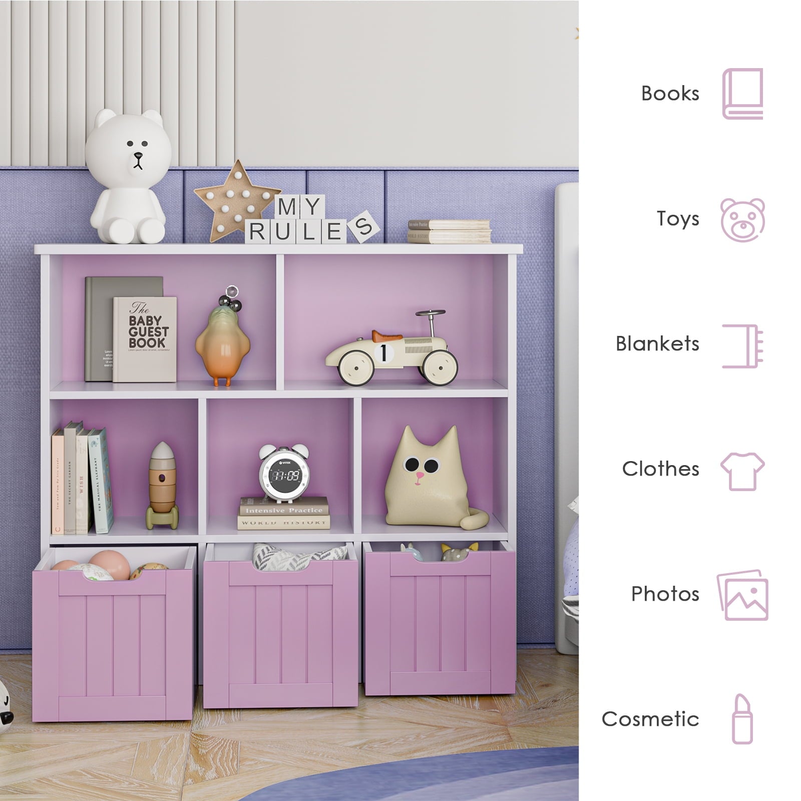 Homfa 5 Cube Toy Storage Organizer, Kids Geometric Bookcase with 3 Drawers, Pinkish Purple Finish