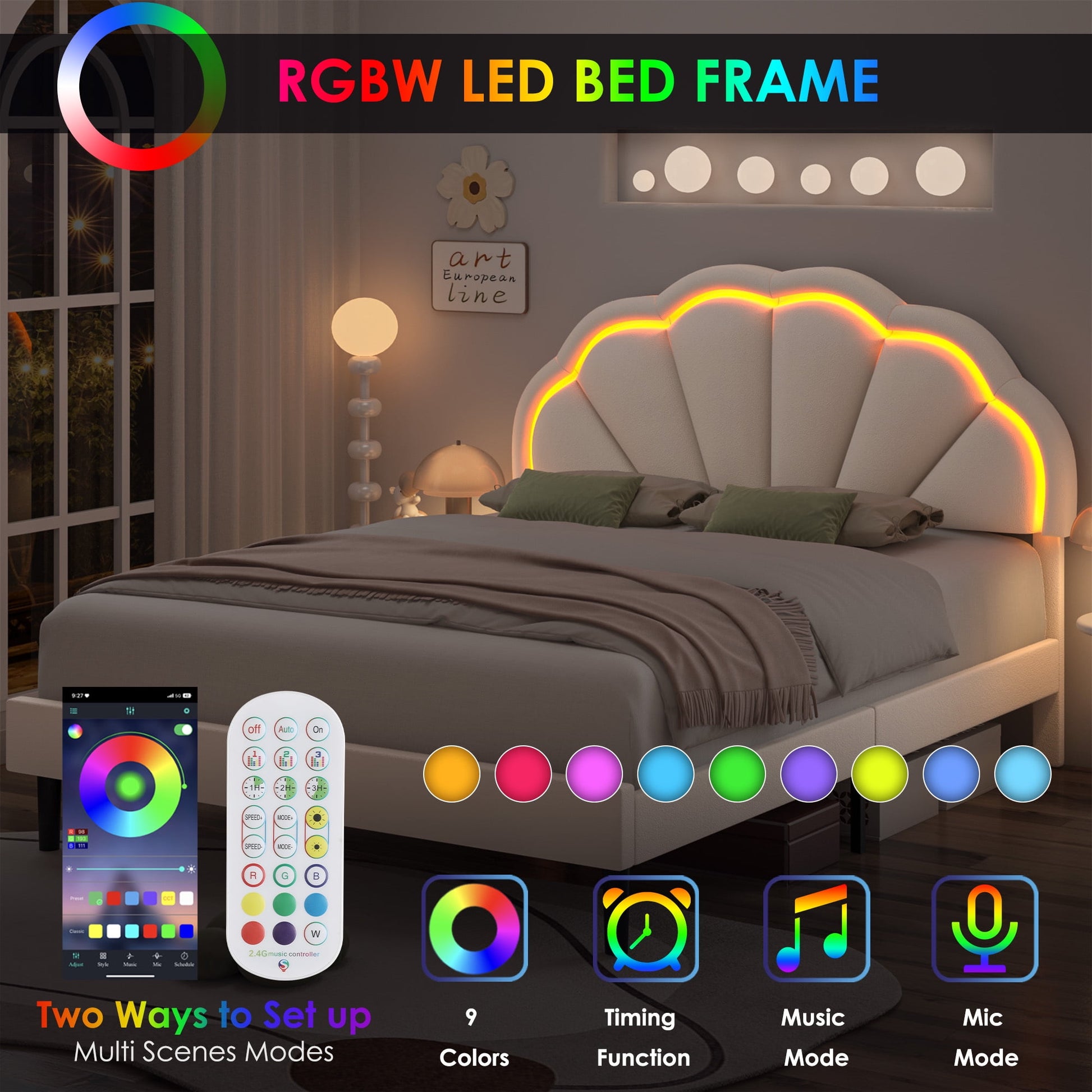 Features- LED lights bed include 9 colors, 3 music activated modes, you can change the lights via remote control or APP to create the perfect environment to suit your mood.