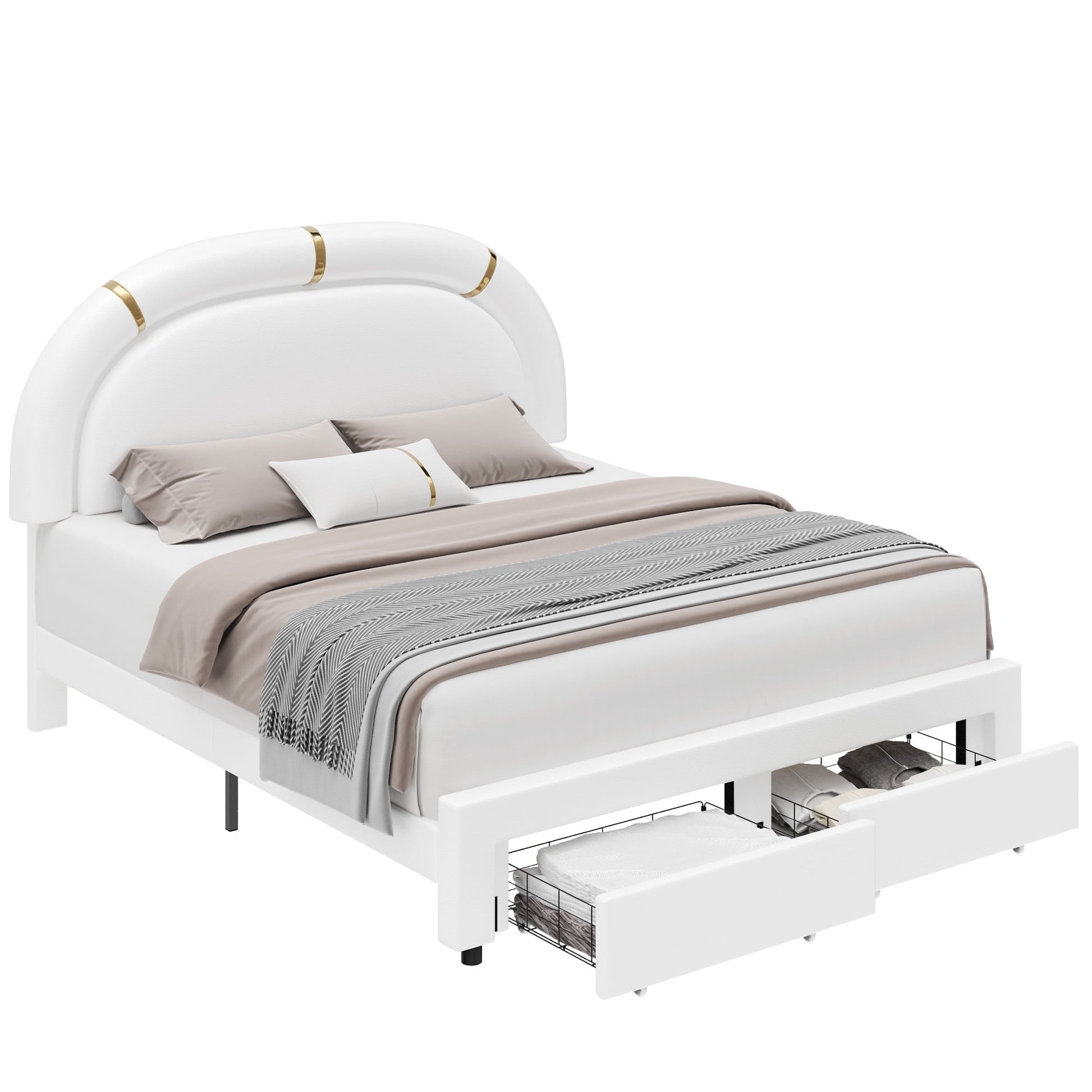 - 2 large hidden storage drawers on wheels under the bed, full size bed frame with headboard and storage is convenient to daily storage.