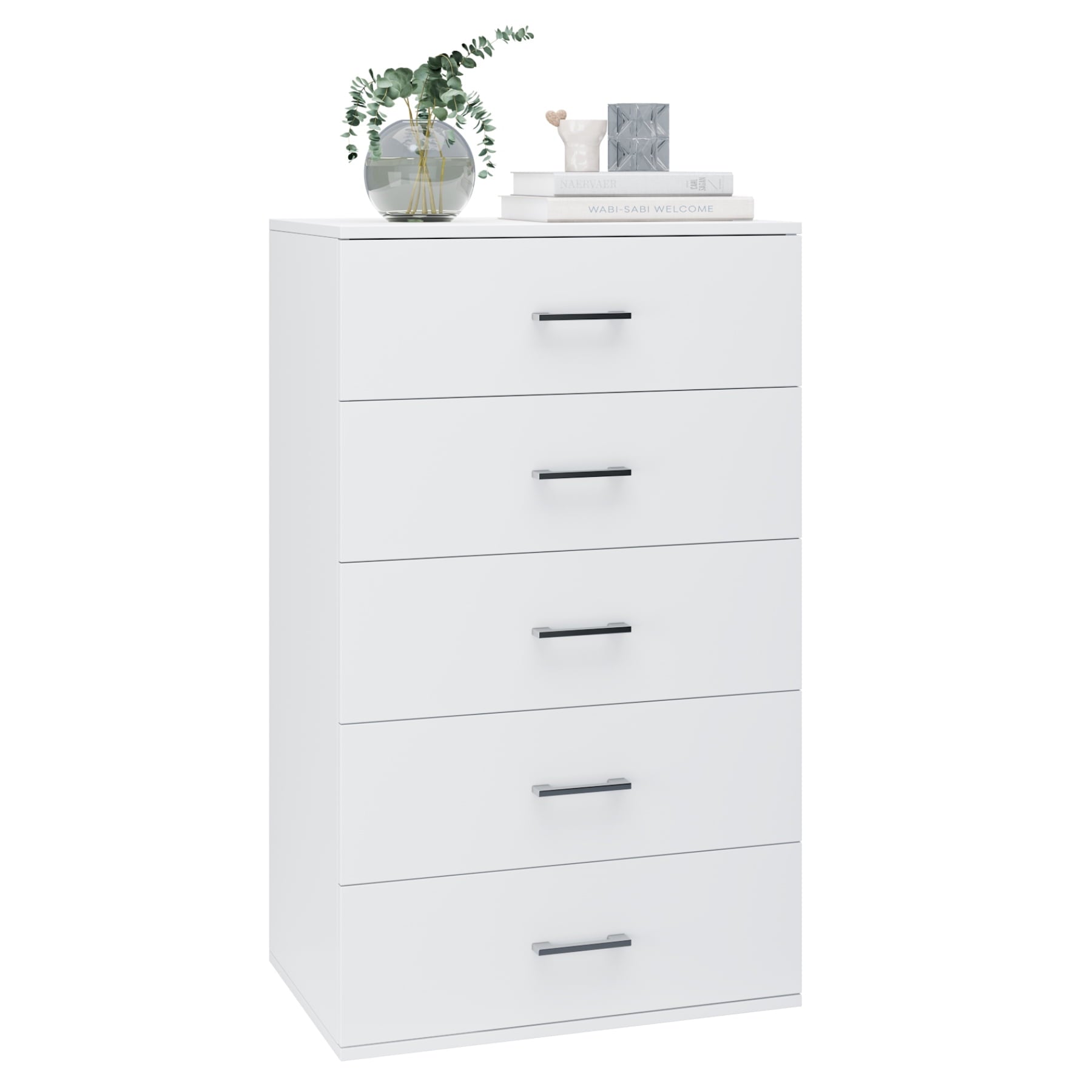 - This contemporary vertical dresser with drawers has an elegant white finish, which perfectly matches your home furnishings.This 5 drawer dresser is suitable for bedroom, apartment, living room, or other places like the office.