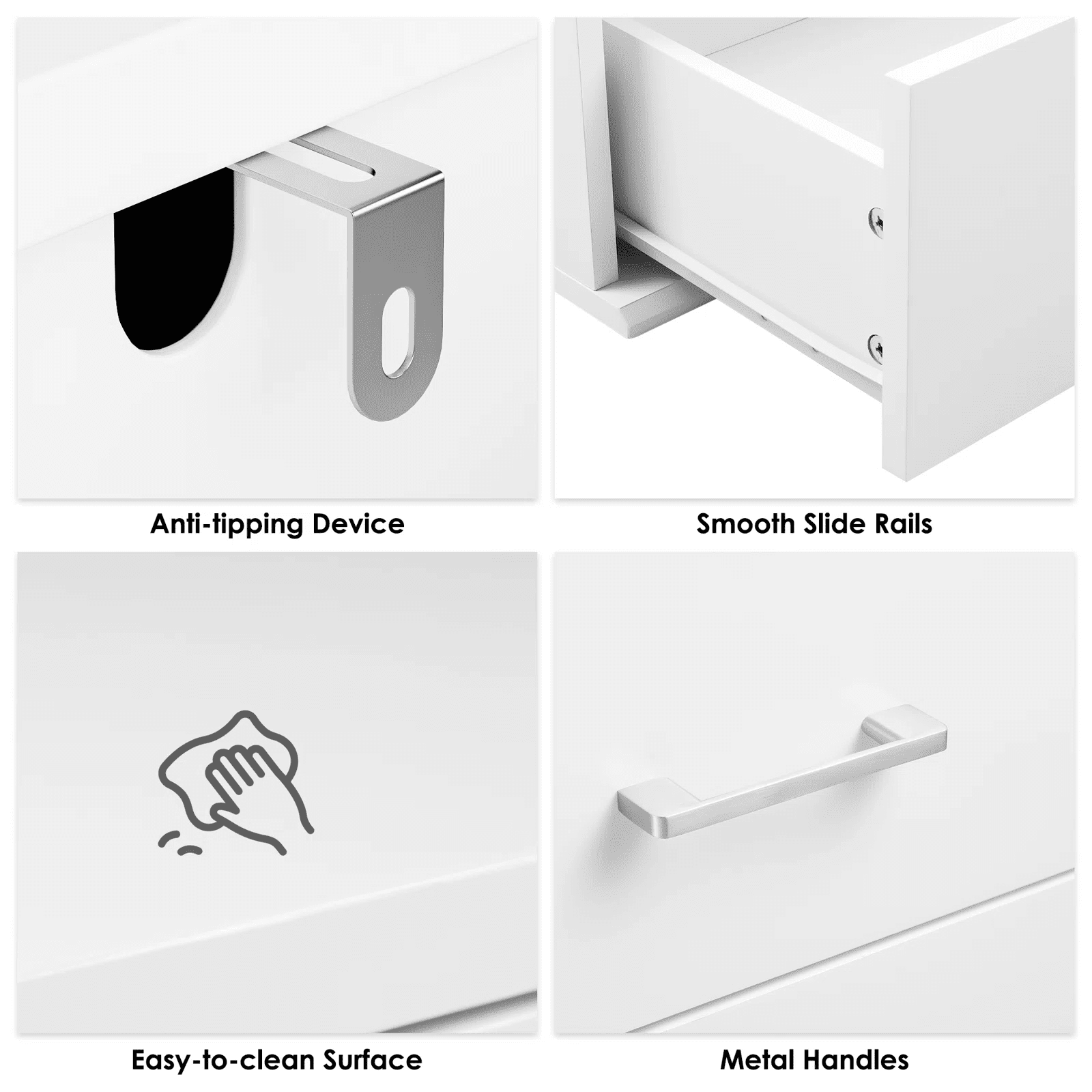 - The white dresser is paint finished, makes it waterproof and easy to clean with a cloth, no need to wash with water.
