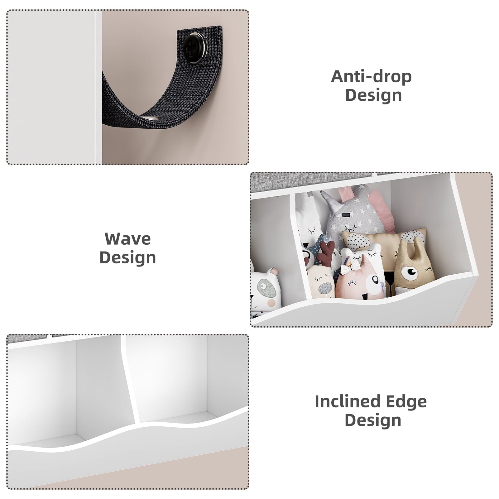 Inclined edge design,Increased storage capacity, perfect for toy storage