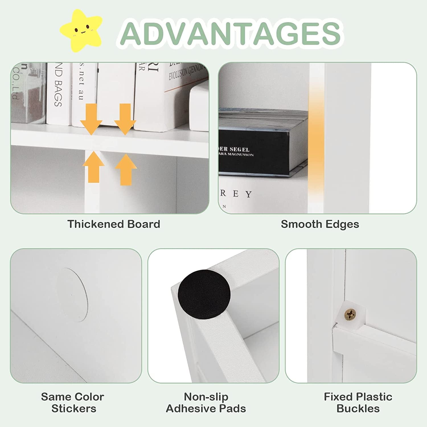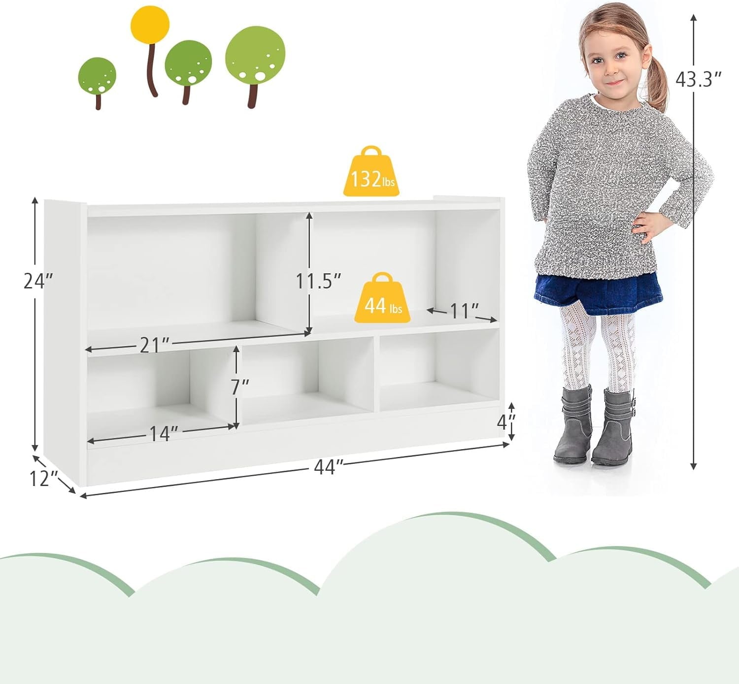 - Equipped with reinforced back buckles and anti-slip foot pads, this book shelf organizer for kids performs well in stability and sturdiness to provide great protection. Plus, the open design and kid's- friendly height make this daycare shelf easy to access items, which is beneficial to cultivating your little ones' good organizing cognition and reading habit.