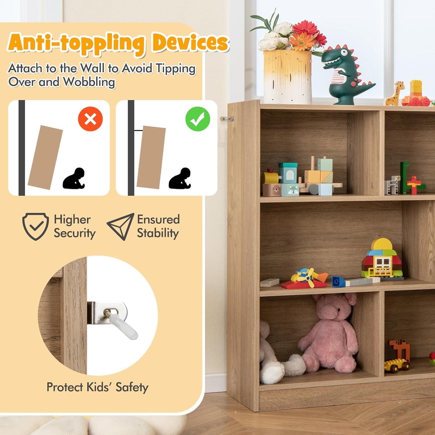 - Equipped with reinforced back buckles and anti-slip foot pads, this book shelf organizer for kids performs well in stability and sturdiness to provide great protection. Plus, the open design and kid's- friendly height make this daycare shelf easy to access items, which is beneficial to cultivating your little ones' good organizing cognition and reading habit.
