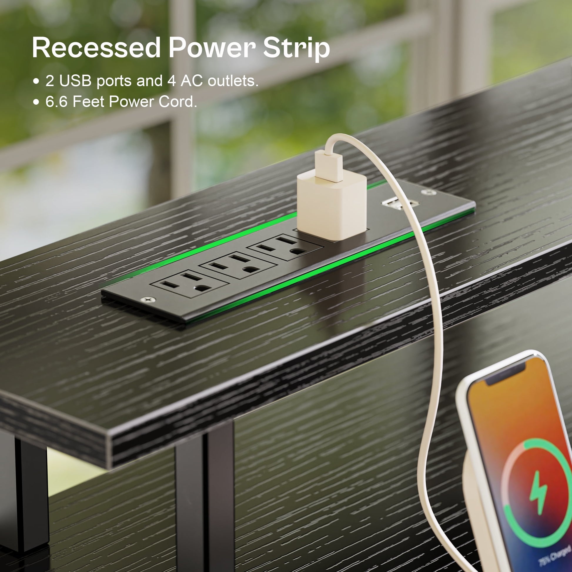 - Desk with Outlets: With 4 AC outlets and 2 USB ports, this gaming desk charges your office and gaming devices and keeps wires tidy