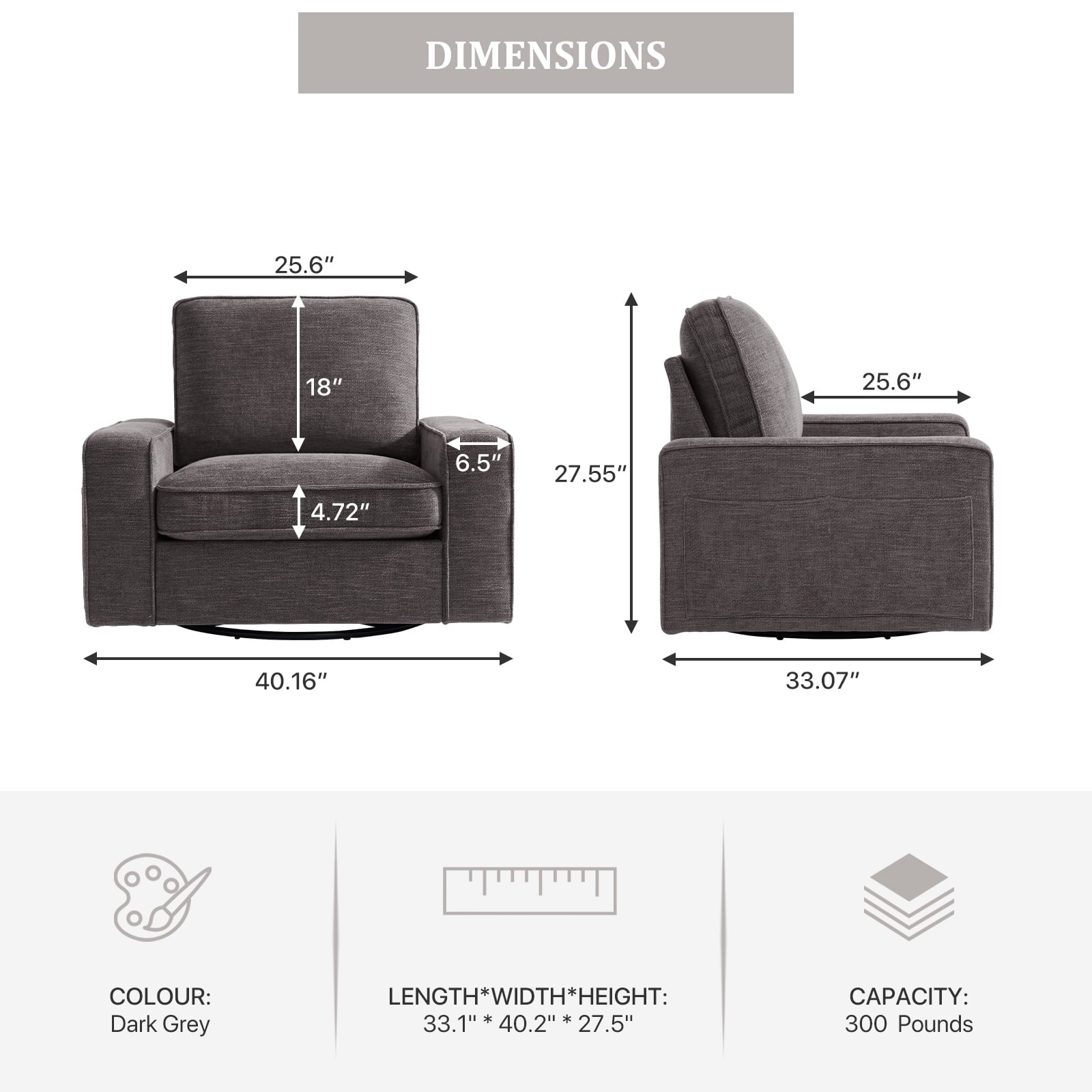 INGALIK Swivel Accent Chair, 40.2"W Oversize Chenille Accent Armchair with Storage Bag, Modern Comfortable Chair for Living Room, Bedroom, Dark Gray INGALIK provides excellent after-sales service, 90 days free exchange and 1 year warranty. If you have any problem with your order, please feel free to contact us and it will be solved for you within 24 hours.