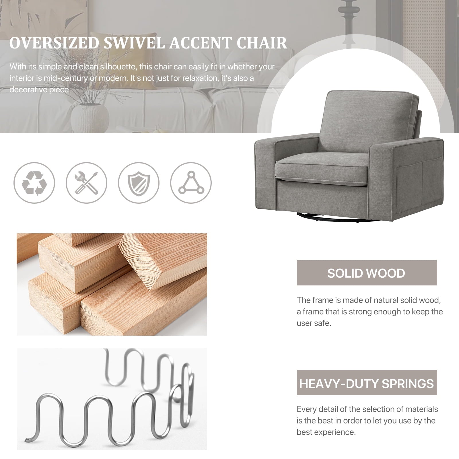 INGALIK Swivel Accent Chair, 40.2"W Oversize Chenille Accent Armchair with Storage Bag, Modern Comfortable Chair for Living Room, Bedroom, Home, Club, Light Gray