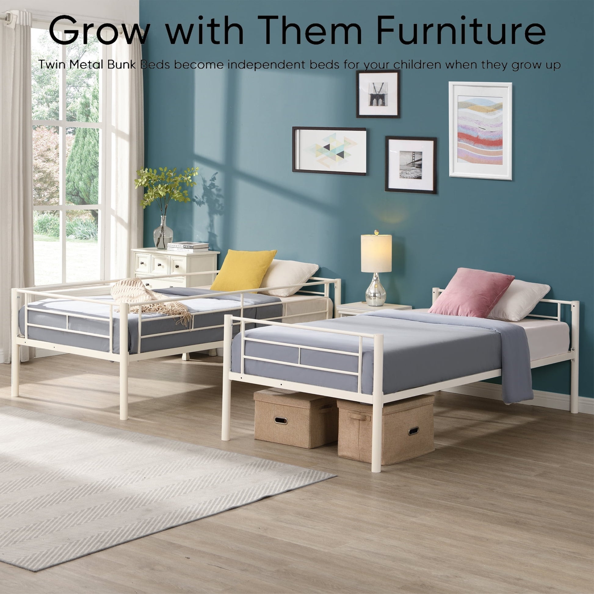 iRerts Metal Twin over Twin Bunk Bed, Convertible Bunk Beds Twin over Twin with 2 Ladders and Full-Length Guardrail, Modern Twin Bunk Beds for Adults Teens Kids Bedroom, No Box Spring Needed, White
