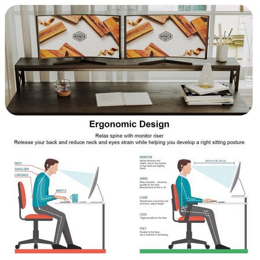 - The black desk offers an extra Desktop shelf, Measuring 6.7" in height, which raises your screen for improved visibility and reduces neck and backache.
