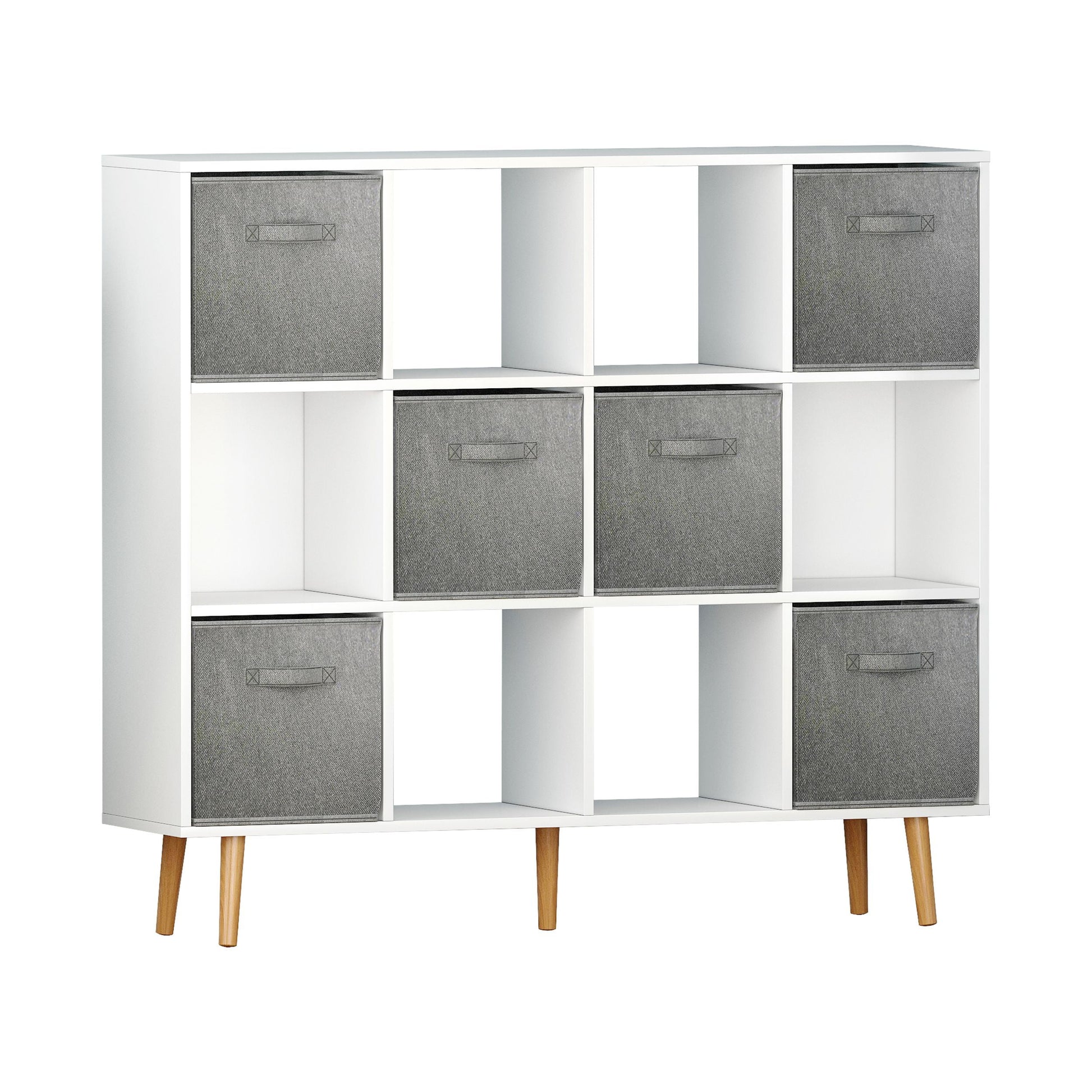 IVV 12-Cube Bookshelf, Freestanding Open Bookcase with 6 Fabric Drawers, Modern Wood Display Shelf for Living Room Study Home Office (White)