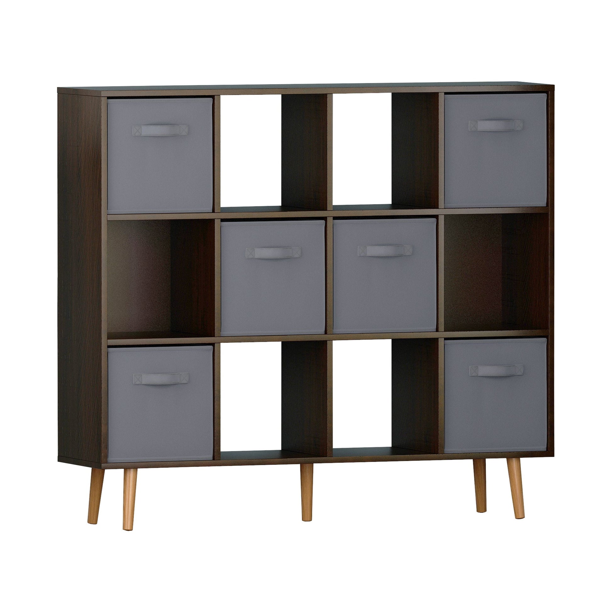 Storage Bookcase with Fabric Drawers and Wood Legs